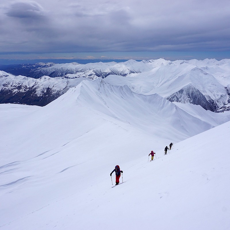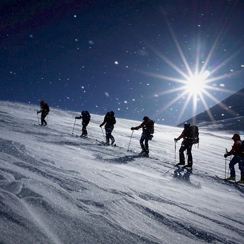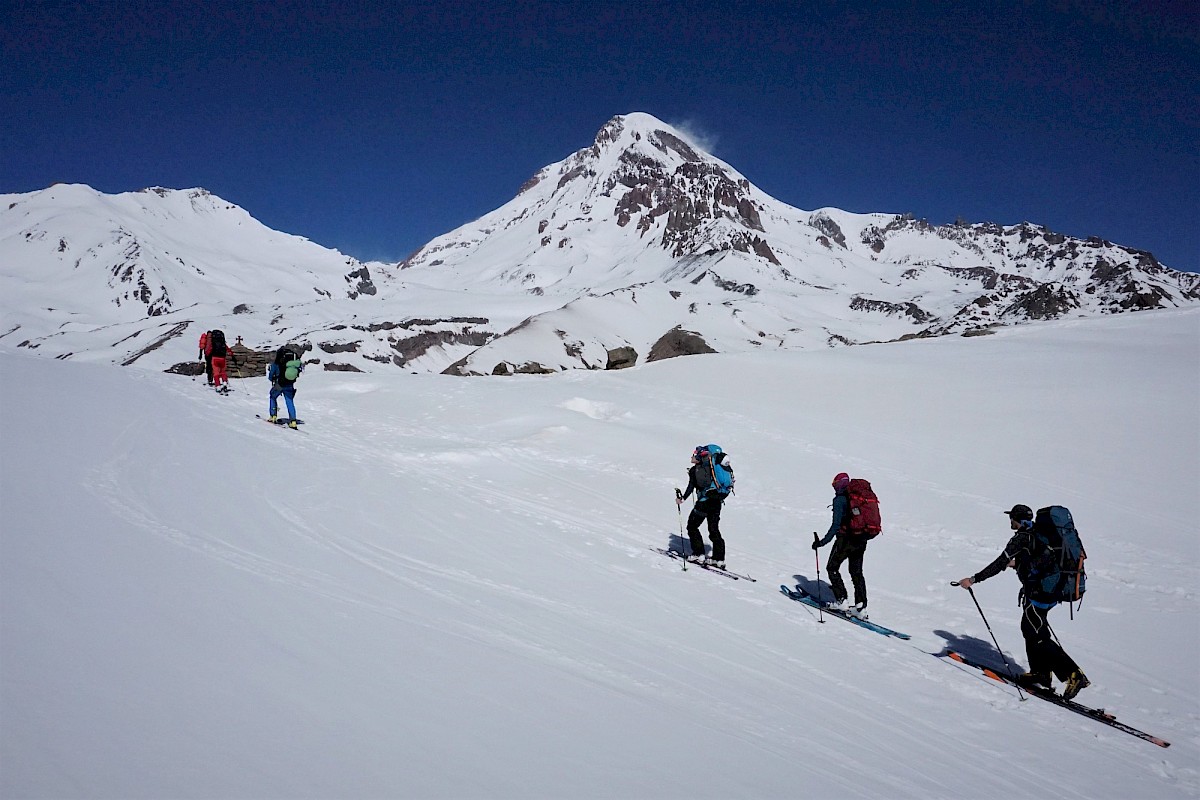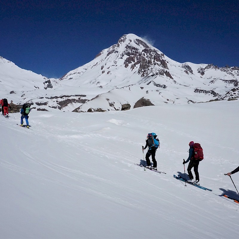 Diese 10-tägige Skireise führt uns in den südlichen Kaukasus - an die Grenze zwischen Europa und Asien. Die Region rund um den Skiort Gudauri ist bekannt für ihre Gastfreundschaft und jede Menge Schnee. Die Tourenmöglichkeiten auf die umliegenden 3.000er sind ideal, um sich an die Höhe anzupassen. So geht es gut akklimatisiert zum 5.047m hohen Kazbek. Mit seinen weiten, nicht zu steilen Hängen ist er DER Ski-5.000er im Kaukasus.