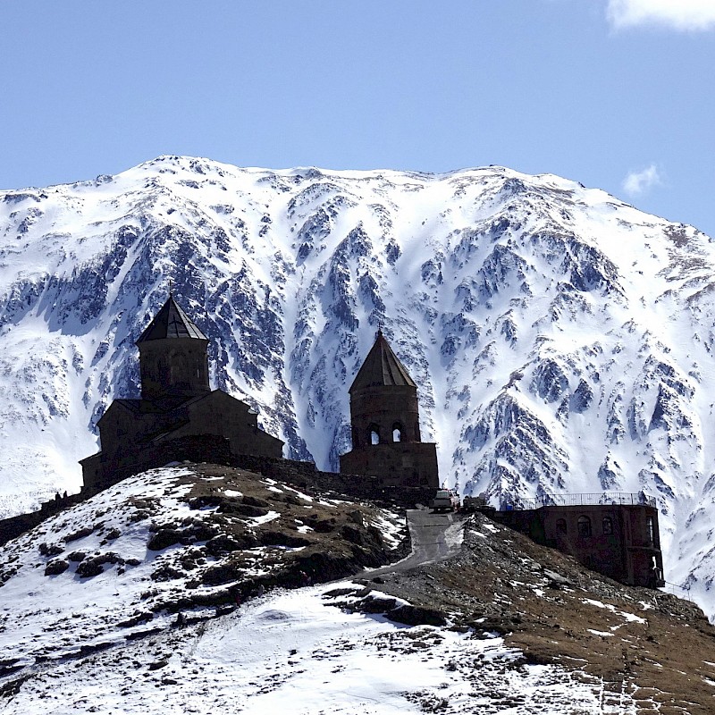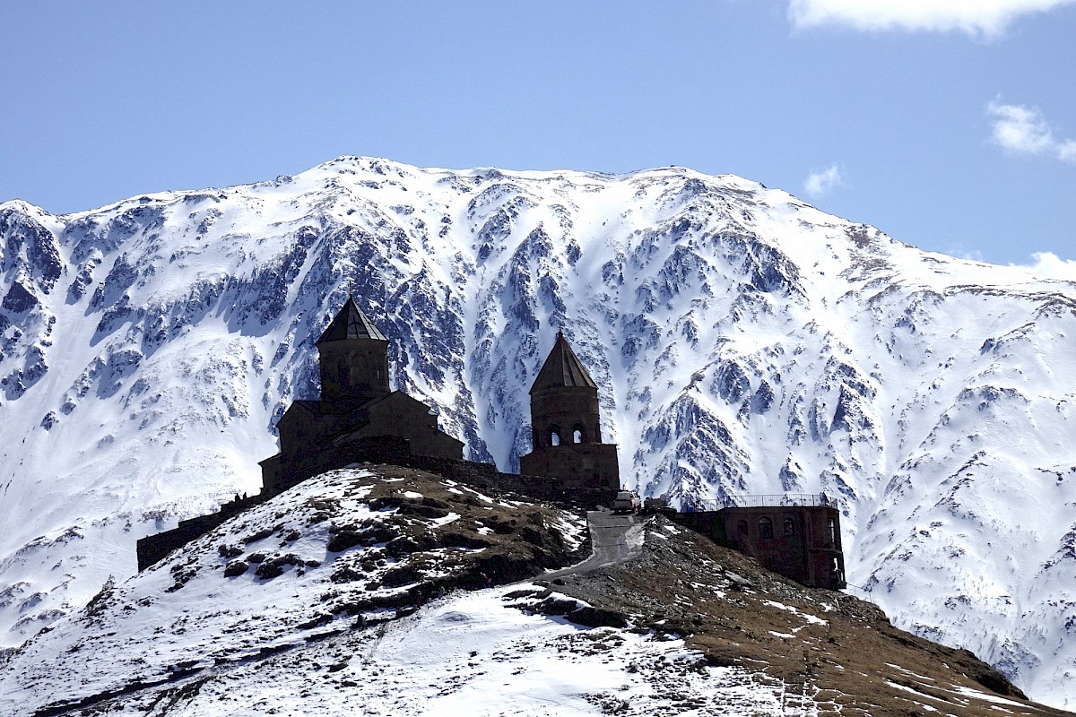 Eine dreistündige Fahrt bringt uns in den bekannten Skiort Gudauri. Anschließend steht eine einfache Skitour auf dem Programm. Entweder Besteigen wir den 3.307m hohen Sadzele vom Skigebiet aus oder unternehmen eine Tour vom Kreuzpass auf die Bidara (3.174m).